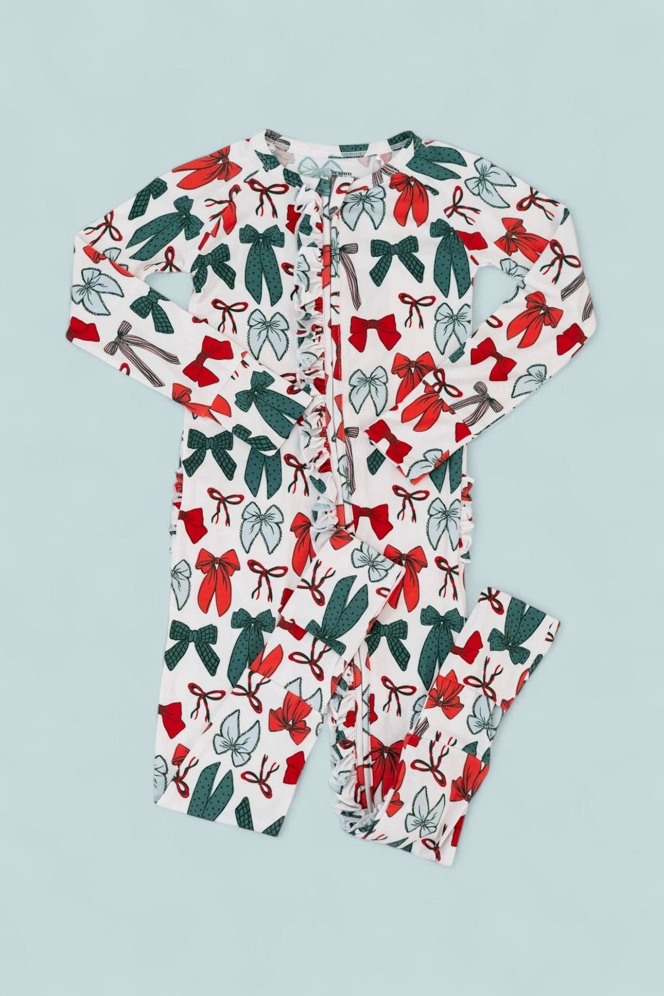 Add a twirl of holiday charm with our Be Merry Bows Dream Ruffle Romper! Featuring a delightful array of festive bows and sweet ruffle details, this romper is made from our ultra-soft bamboo fabric for all-day comfort and cuteness. With ruffled sleeves, fold-over cuffs, and a double zipper for easy changes, it’s the perfect mix of playful, pretty, and practical for your little holiday sweetheart!