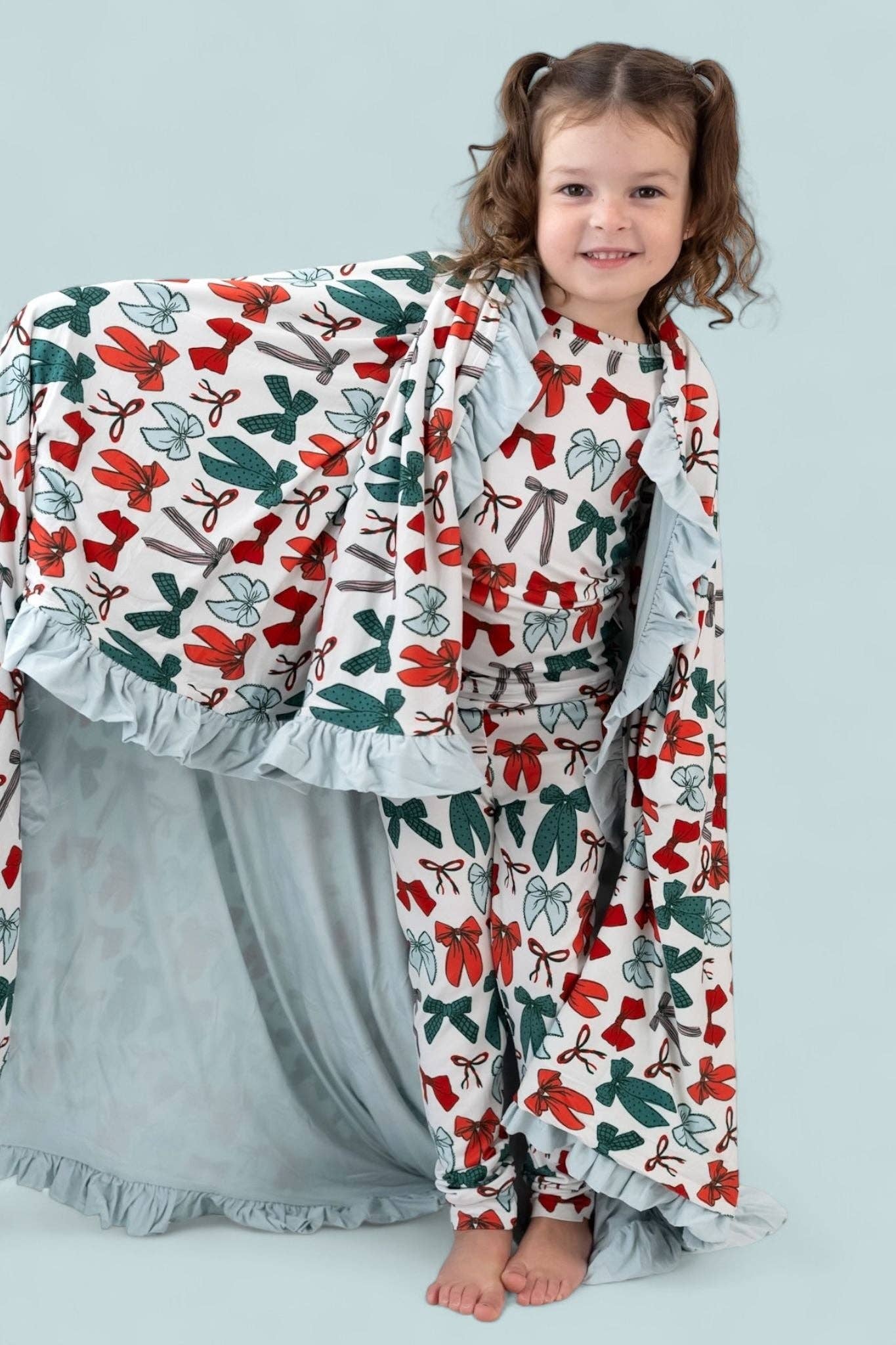 Tied up with holiday cheer, our Be Merry Bows Dream Set is the perfect two-piece for festive nights and merry mornings! Featuring a whimsical mix of red and green bows on buttery-soft bamboo fabric, this long sleeve pajama set is cozy, breathable, and oh-so-stylish. Whether it's lounging by the tree or unwrapping gifts, your little one will feel comfy and cute all season long!