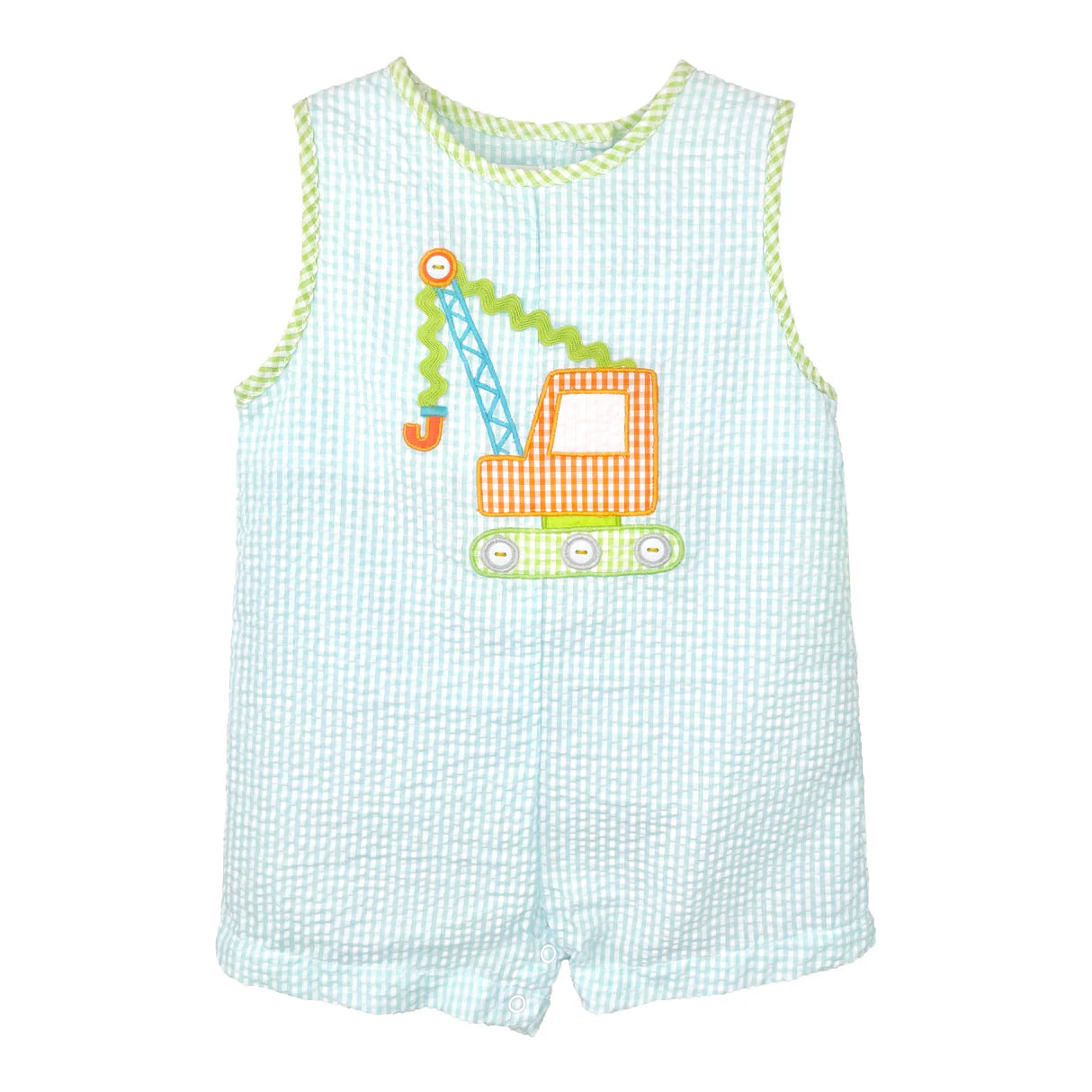 The Crane Mint Seersucker Jon Jon is a delightful and playful outfit! Featuring a charming mint seersucker fabric and crane applique, this Jon Jon is perfect for spring and summer. Convenient snaps in the stride make dressing a breeze.