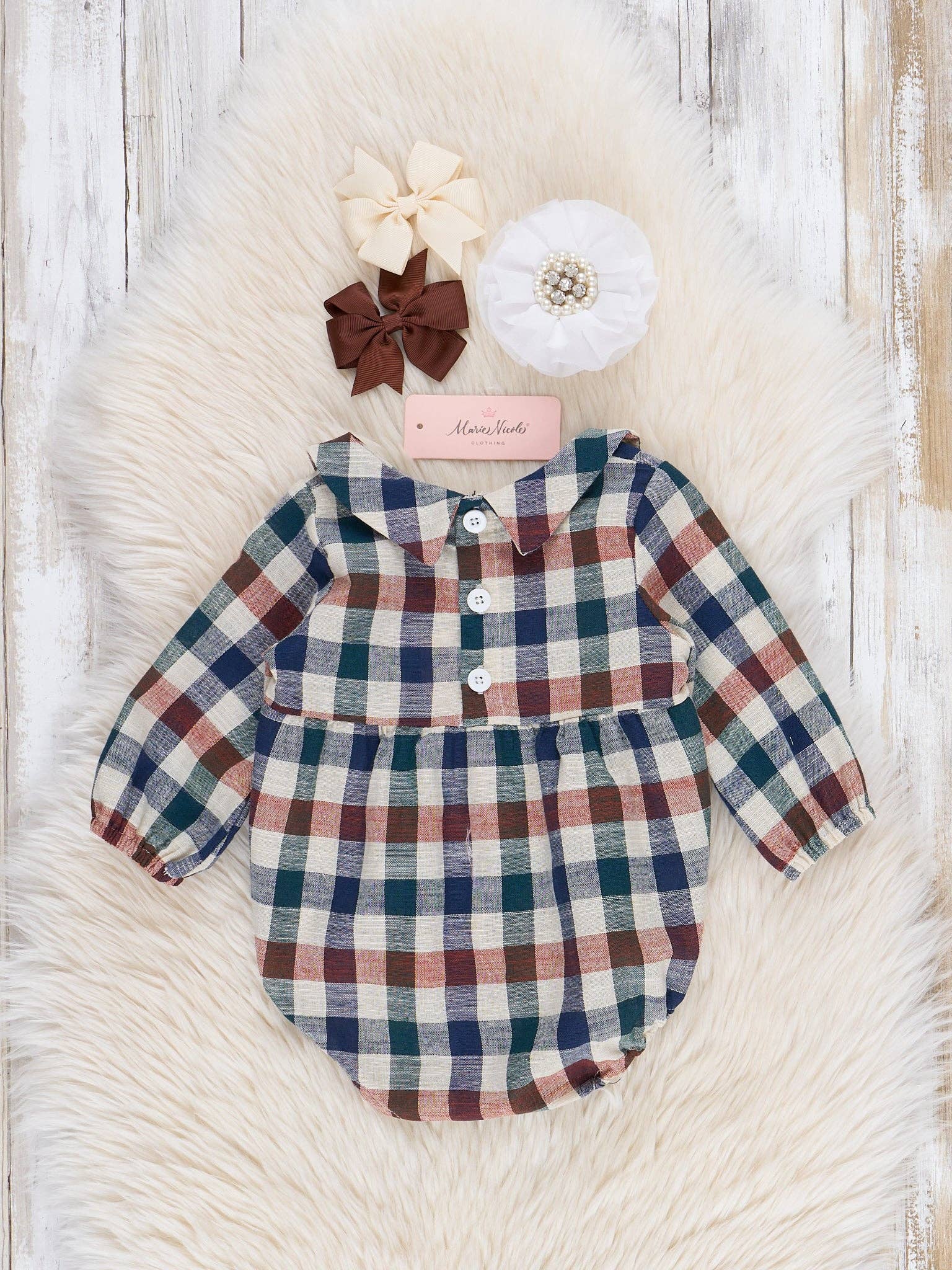 IT'S BACK! The best fall set for siblings, cousins, or even best friends! This fall plaid bubble features peter pan collar, elastic leg holes, and the perfect vintage plaid. Perfect to keep the littles warm this season! * Fits true to size. * 95% Cotton / 5% Spandex