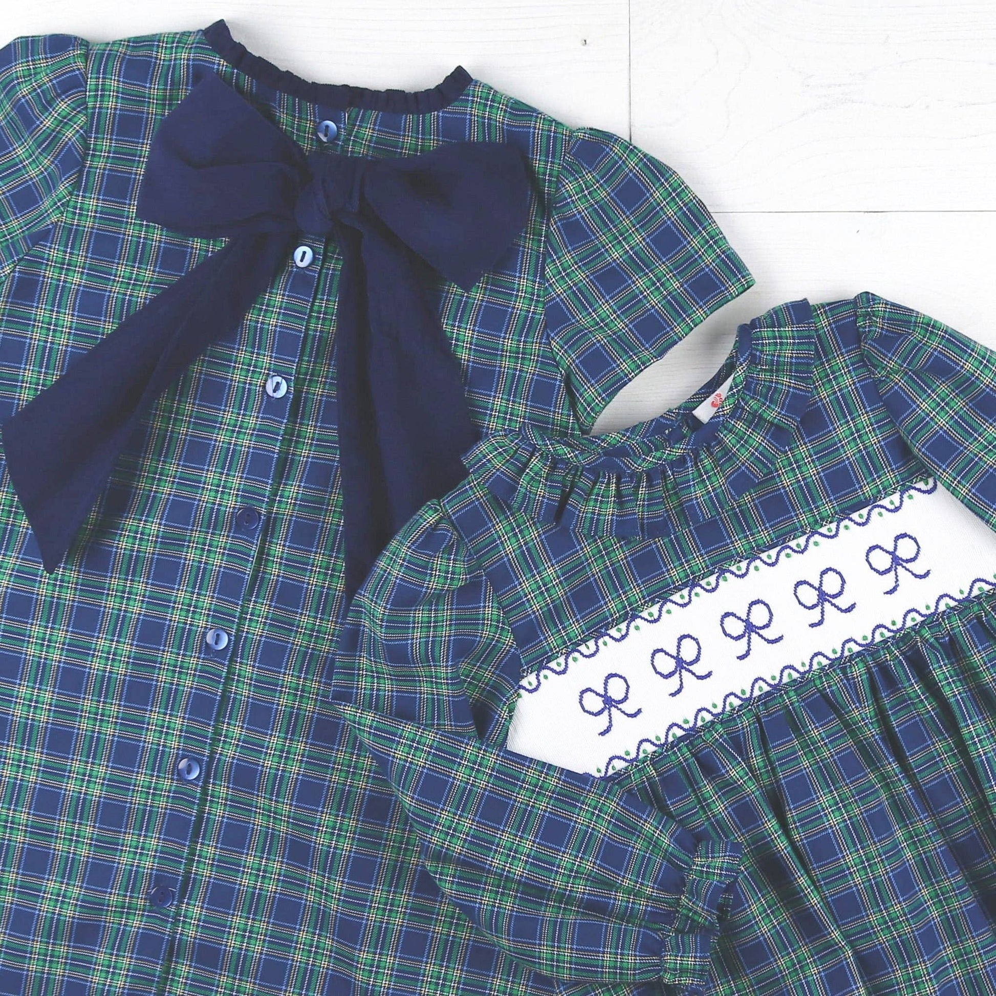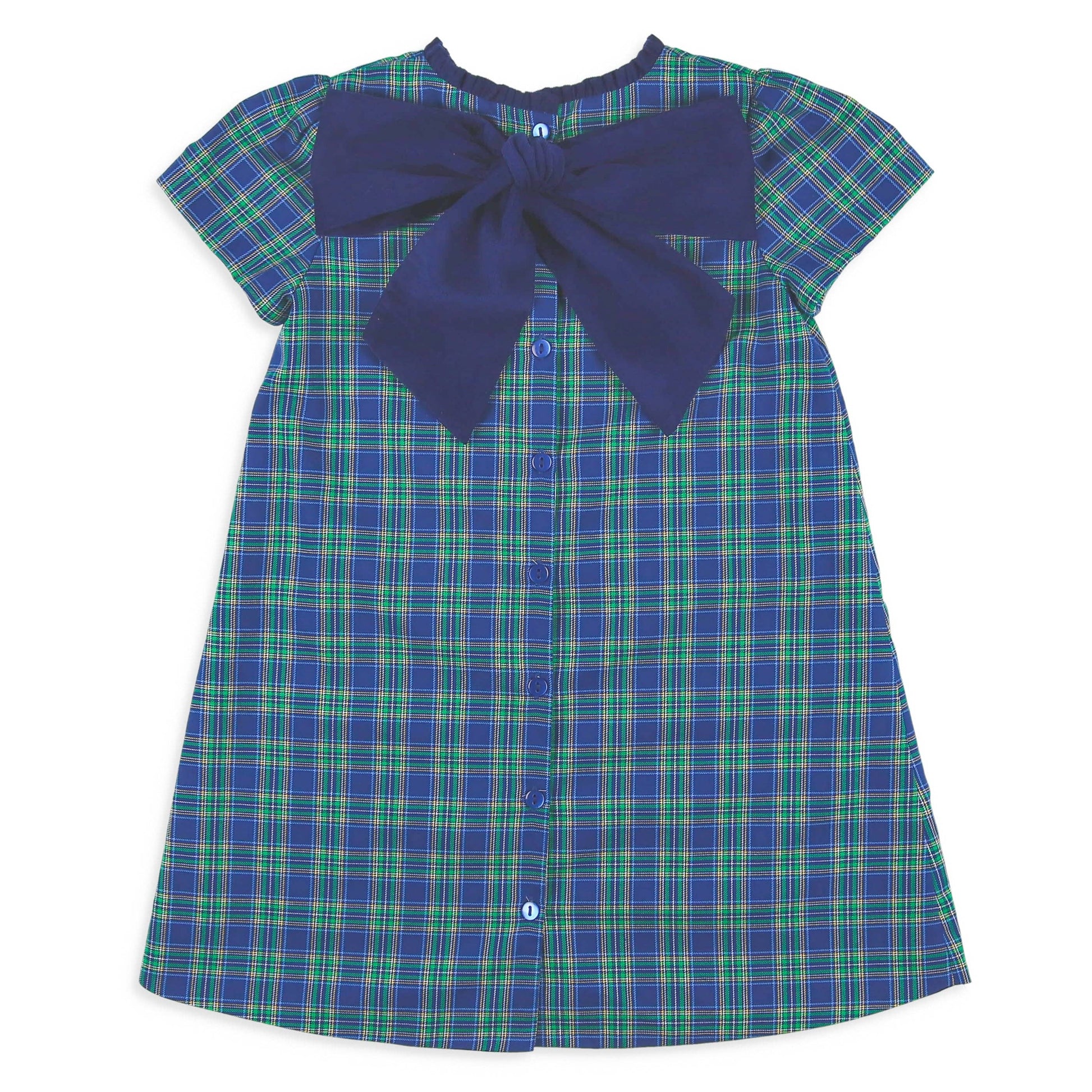 A Guid day to you! Your daughter will look like a Scottish present in this festive Girls Bow Back Dress-Midnight Tartan by Shrimp and Grits Kids.