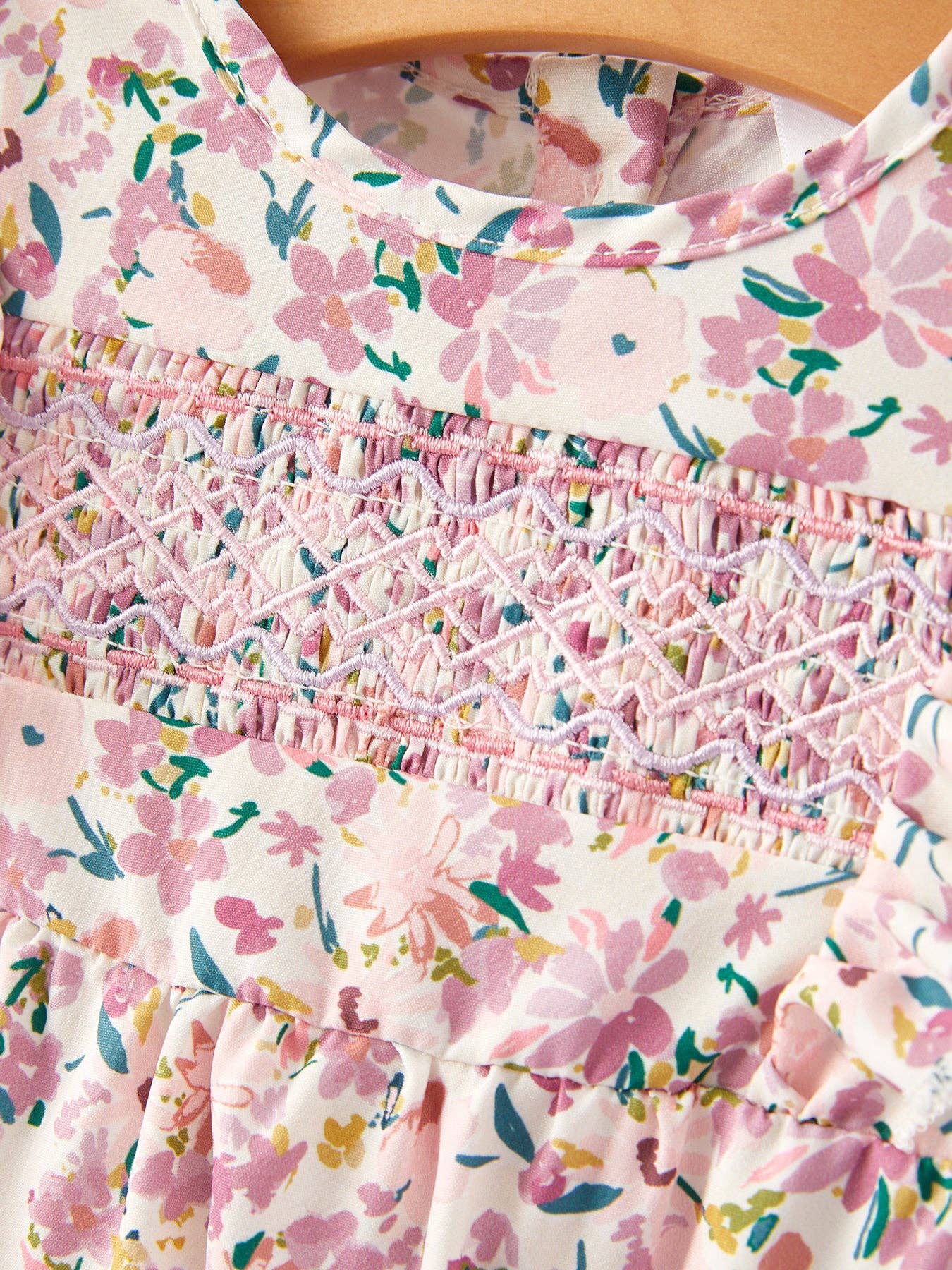 Indulge in the beauty of our Girls Smocking Embroidered Pink Floral Romper! This adorable piece features delicate smocking and intricate floral embroidery that will surely make your little girl stand out. The soft fabric and comfortable fit will keep her feeling confident and stylish all day long. Perfect for any occasion, this romper will be a charming addition to her wardrobe. SKU:RPG40611 Material: 100% Polyester