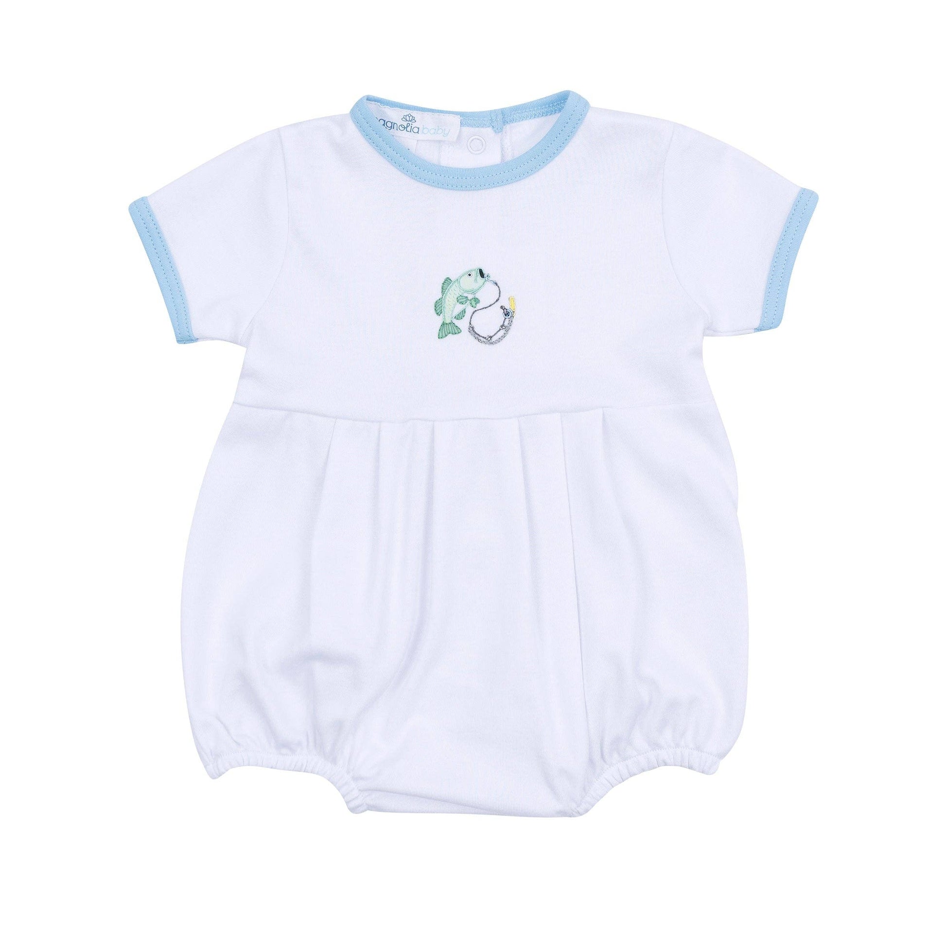 This adorable bubble is perfect for your little angler! With its charming hand-embroidered fish and fishing line, this piece captures the spirit of a day at the lake. Crafted from the most luxurious Pima Cotton, it's incredibly soft against baby's delicate skin and perfect for warm days.