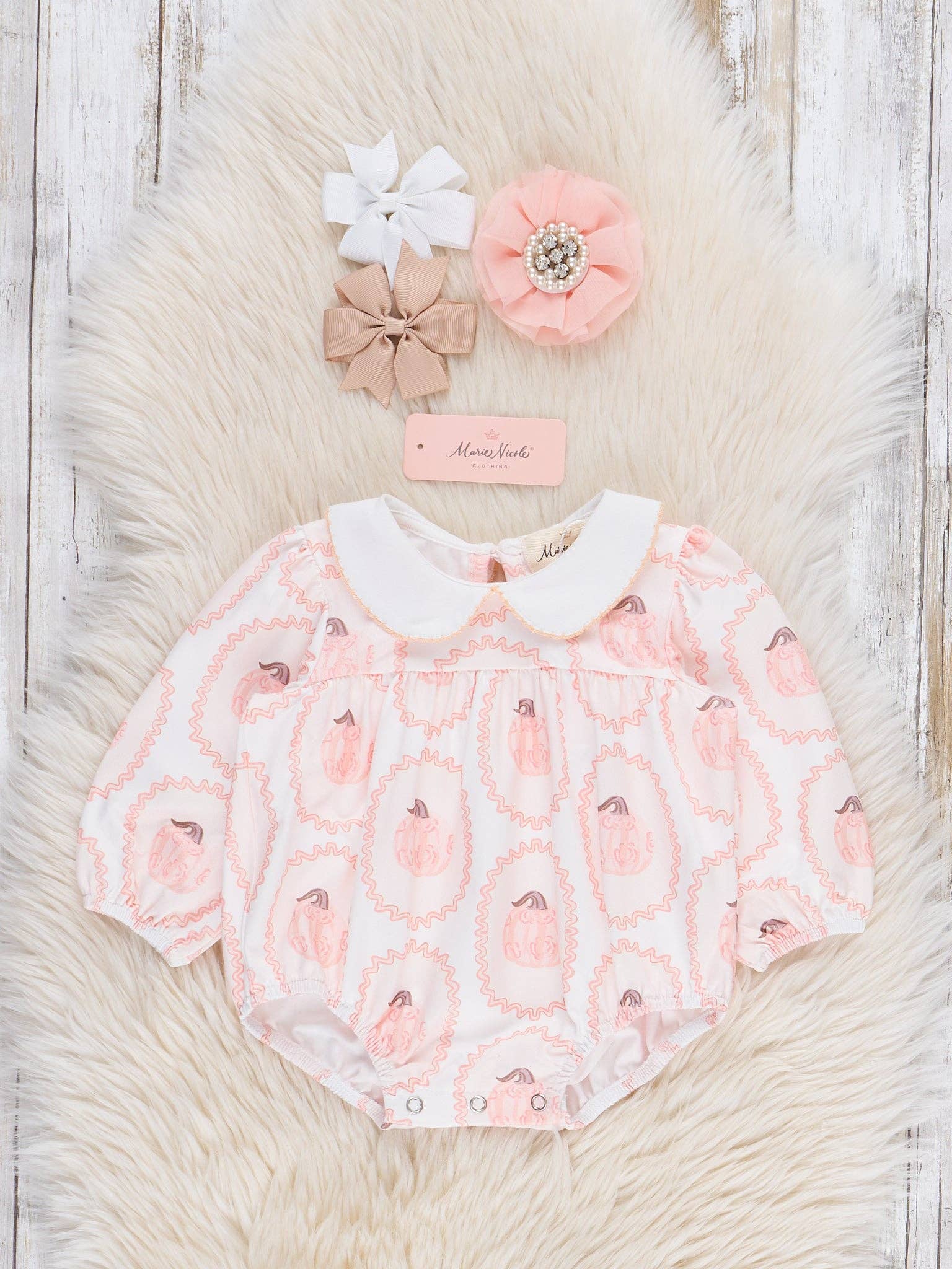 The Pumpkin Picker’s Bubble is a playful and cozy pick for fall festivities. Featuring an allover pumpkin print in warm autumn hues, this bubble from Marie Nicole Clothing captures the joy of harvest season with a soft, breathable design. Perfect for pumpkin patch adventures, seasonal photos, and picture-perfect memories. * Snap buttons. * Fits true to size. * 95% Polyester / 5% Spandex * Combo: 97% Cotton / 3% Spandex