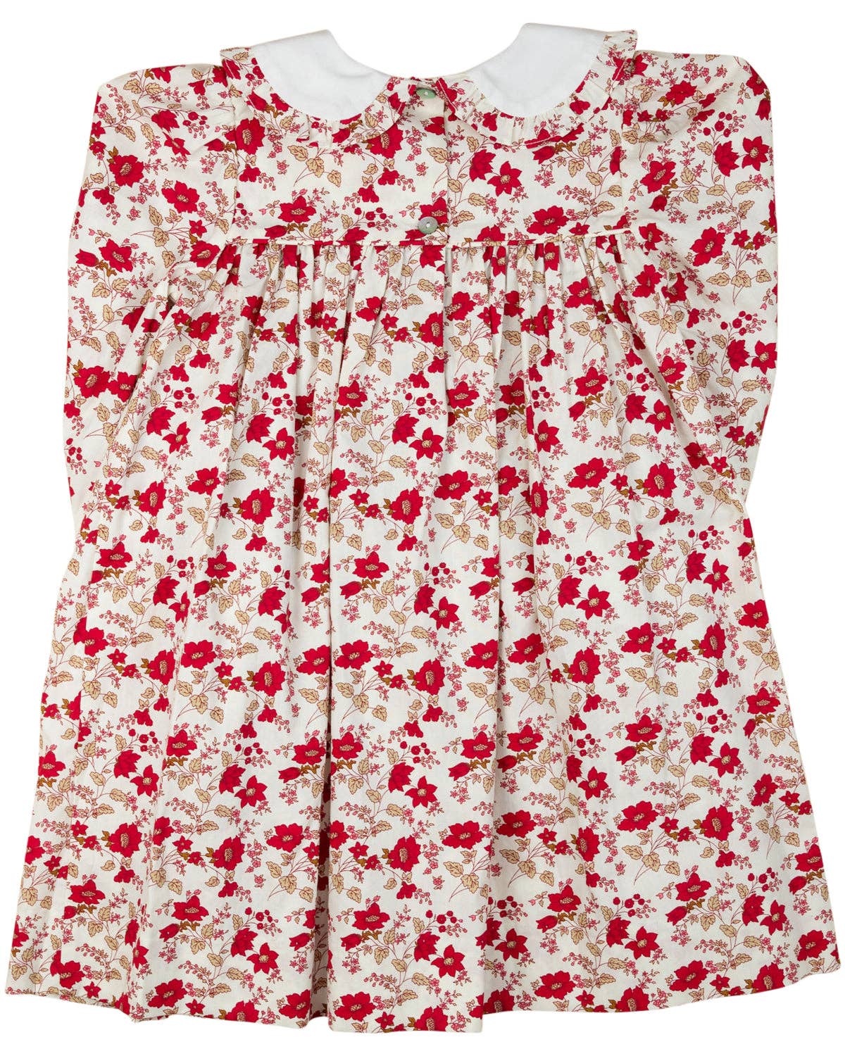 A vintage-inspired holiday look, our Red Floral Smocked Dress is a timeless piece that exudes charm. Featuring a red floral print, intricate hand-smocked embroidery, and a sweet peter pan collar, this dress is perfect for festive gatherings and family photos.