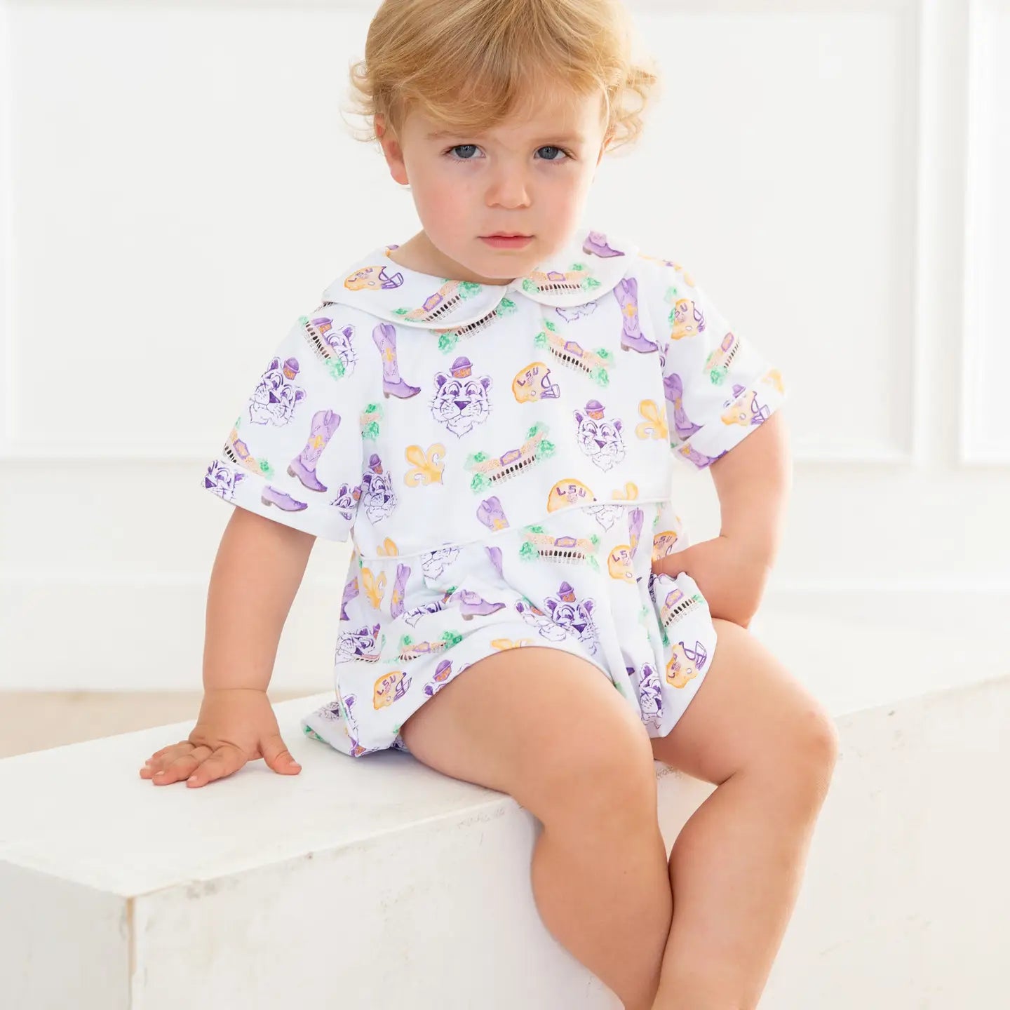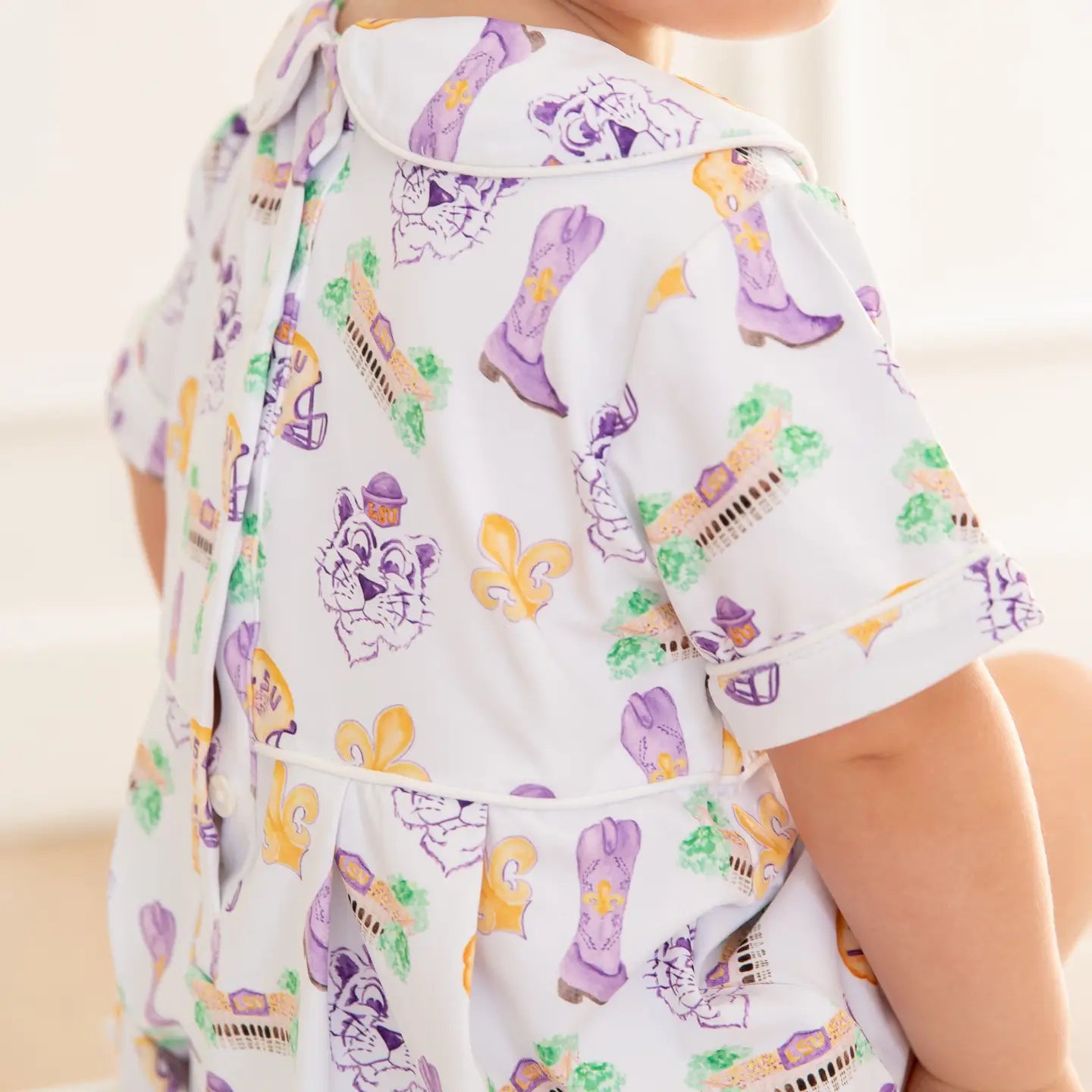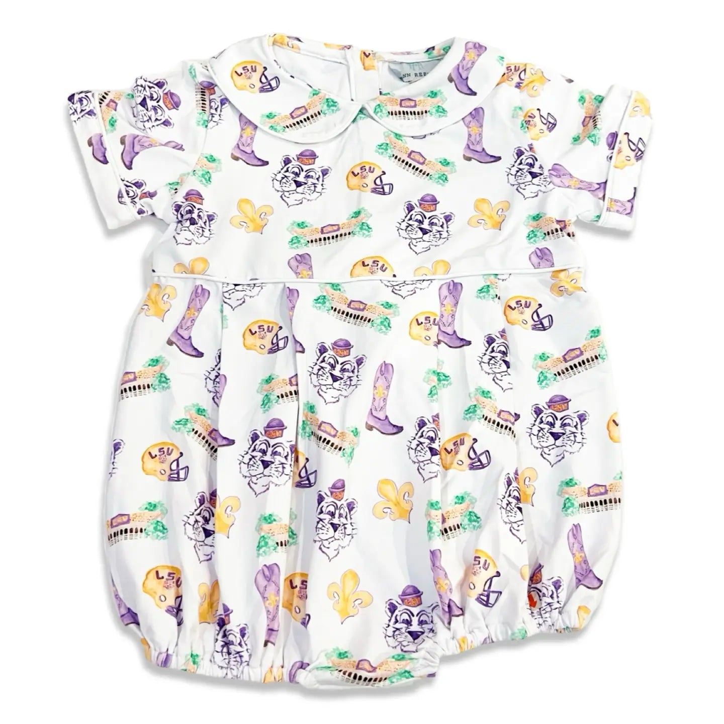 This fabric is the BEST! It washes well and never wrinkles. Our new knit collegiate collection can't be beat! These knit bubbles are going to be a staple in your little fan's closet! We can't wait for Saturday Night in Death Valley!