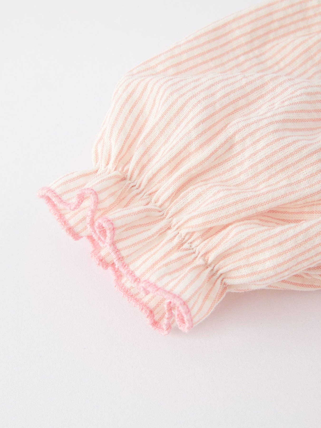 Celebrate love and style with our Valentine's Day Baby Girls Romper. Featuring a sweet heart smocking and charming embroidered stripes, this romper is perfect for your little one's first Valentine's Day outfit. Show your love with this adorable and unique romper! SKU:RPG50036 Material:100% cotton